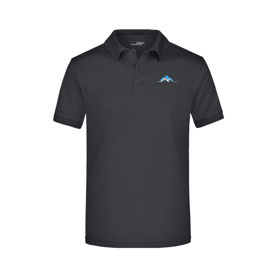 Col tricoté plat respirant, boutons ton sur ton, polyester fonctionnel de haute qualité (micropolyester), régulateur d’humidité et séchage rapide, lavable à 30°, ne convient pas au sèche-linge